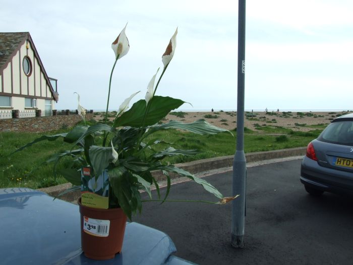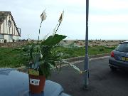 The peace lily relaxes at the beach.