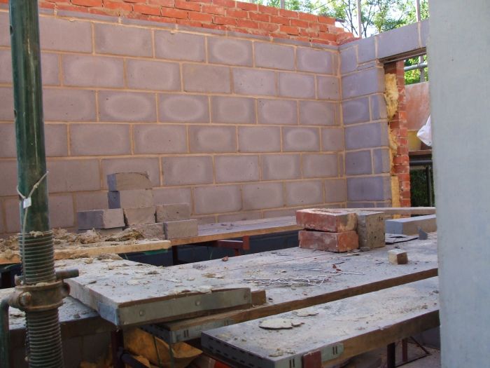 view from (current) bathroom into extention (new) kitchen